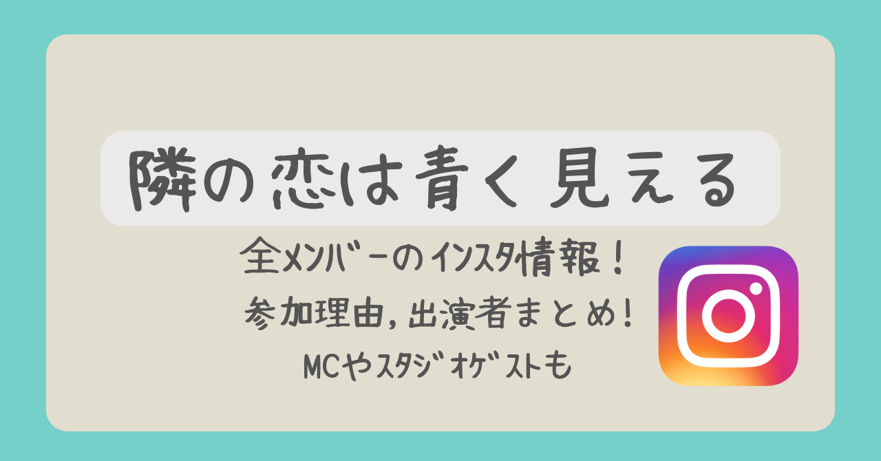 - 『隣の恋は青く見える5』は、ダイシロウ&サヤカ、シュウト&アイラ、タカマサ&レイナ、ケント&リオナ、ミチル&ジュンナの5組が「最高の結婚」を見つけるために「お試し破局」に挑戦する、超リアルな恋愛リアリティショーです。